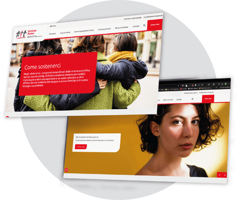 Un percorso che guida l’utente a conoscere le sezioni, l’impegno sociale, i servizi forniti e le possibilità di contribuire allo scopo benefico.